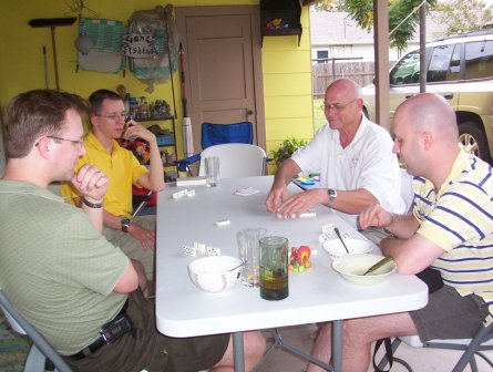 After lunch, the men play dominoes.
