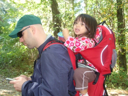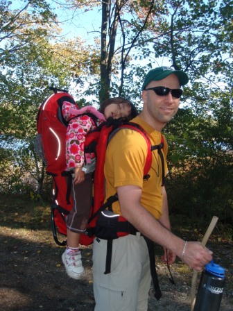 enjoys the walk so much that on the way back to the car she passes out in the kid carrier.