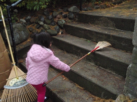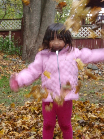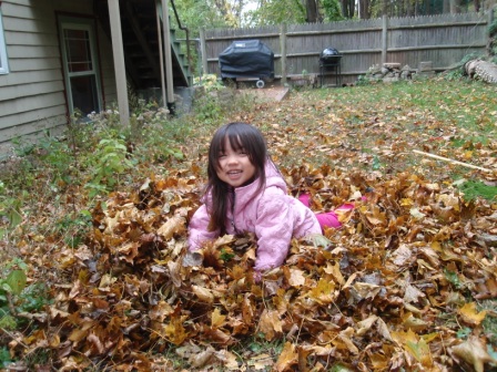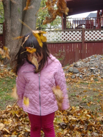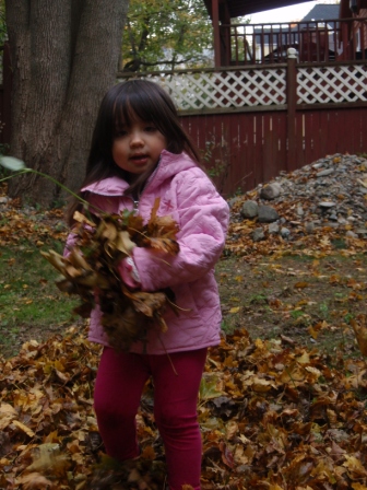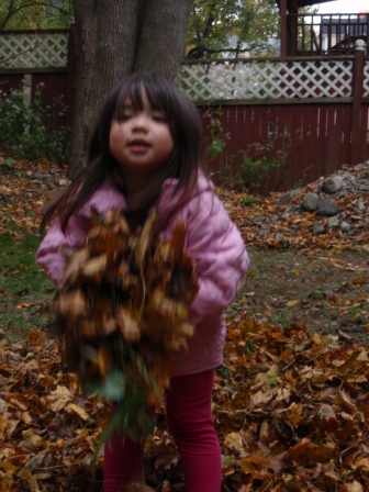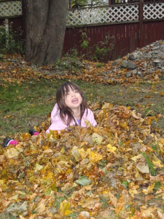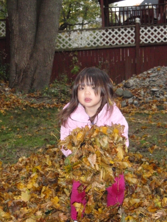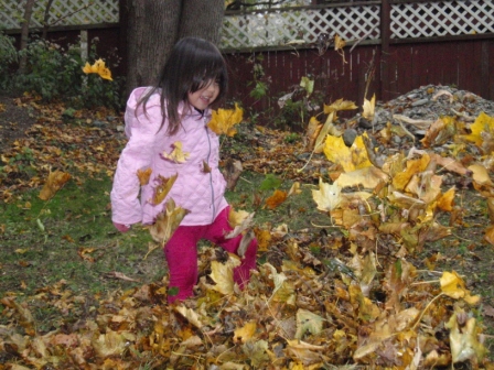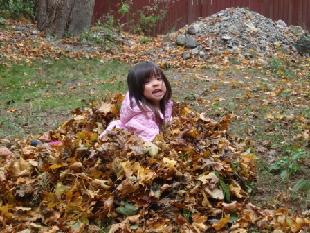 she quickly finds non-traditional ways to "help" us with our big piles of leaves.