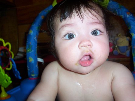 Throughout September, Aurora continued to work her way through solid foods. She enjoyed sweet potatoes, peas, bananas,