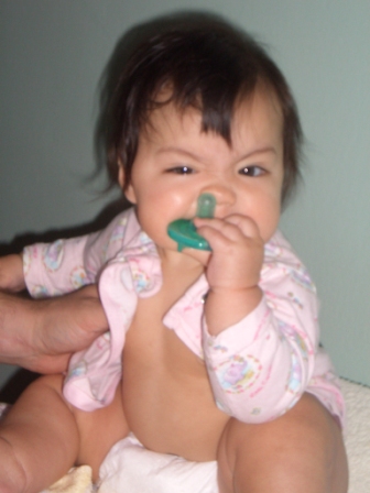 September 16: Aurora finally likes her pacifier - as a chew toy!