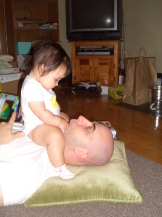 was even able to pull herself up from a sitting position by using Jon's legs or some cushions at day care.