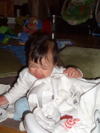 September 20: Aurora does not like to match up her Daddy's socks. But that's OK, since Kathy doesn't like to do it either.