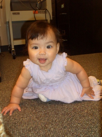 September 30: Aurora came to school with Mama. Here she is exploring the math office.