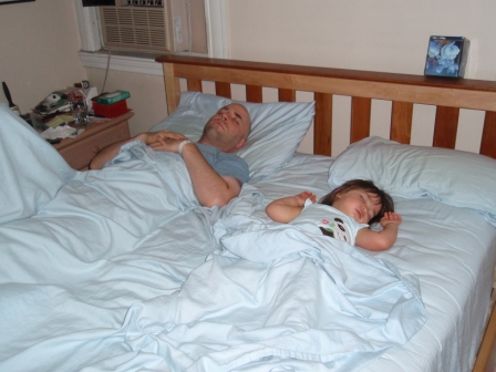 September 5, 2009: The day after Jon's surgery, Aurora and Baba sleep in. It appears that Aurora is a bed hog, just like her Mama.