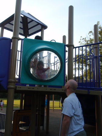 September 21, 2009: After work, we took Aurora to a playground in Watertown. Here she is demonstrating how