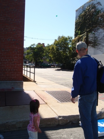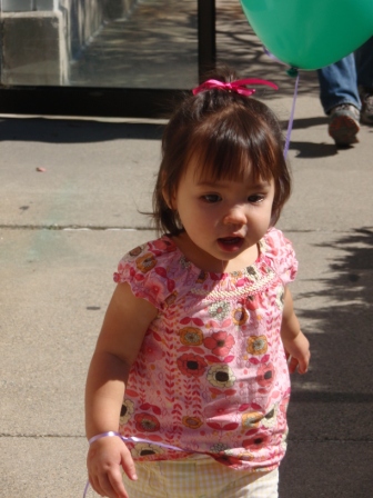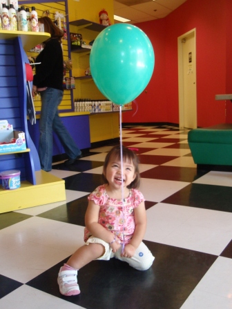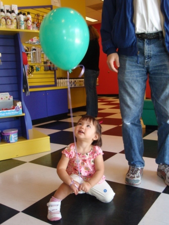 Aurora's first experience with a balloon that gets away. She was a bit upset when we could not catch it in time.