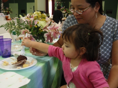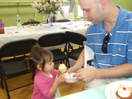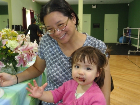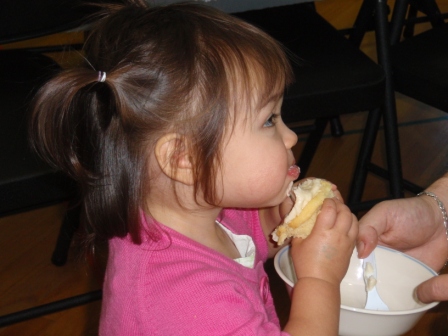 From the MOS, we rushed to a baby shower for Ariana Wood. Aurora had her first cupcake, then tried to steal Mama's.