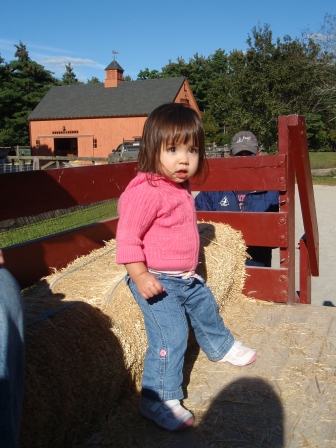 to Jon's knee), Aurora enjoyed her first hayride and seeing the different farm animals up close. She