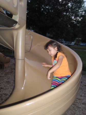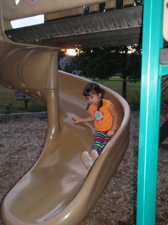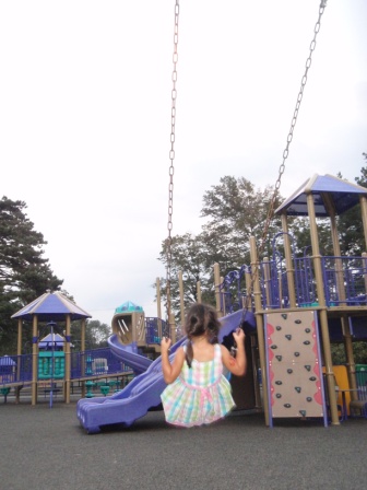 September 14, 2011: Aurora had a chance to play at the Newton Center playground after school that day. She