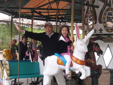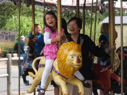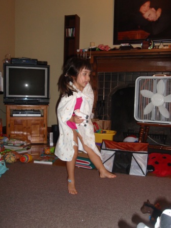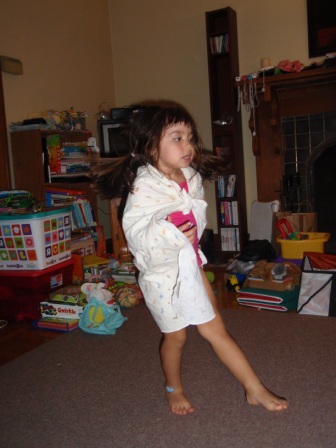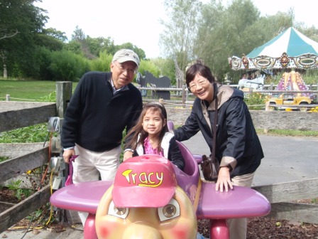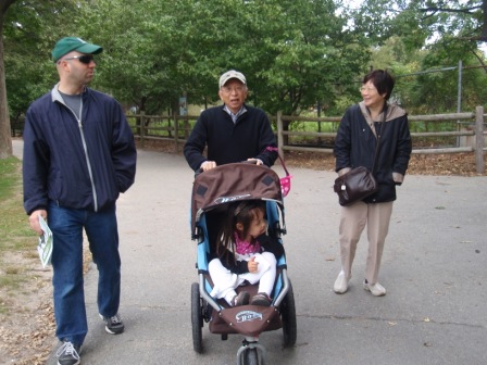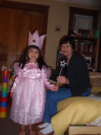 September 16, 2011: Wai Po and Wai Gong arrive for a weekend visit. Here Aurora tries on her