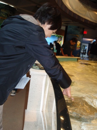 new shark and ray touch tank. Even Wai Po and Wai Gong touch some rays. Aurora looks but