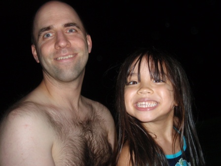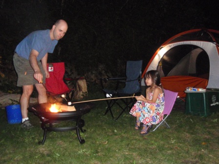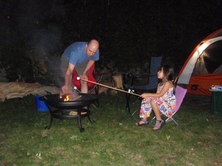 Back at home, there was pletny of time for goofing off in the backyard before Aurora and Jon set up the tent for