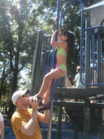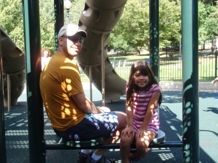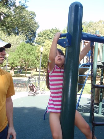 the playground. Aurora got to show Jon some of the skills she learned at My Gym.
