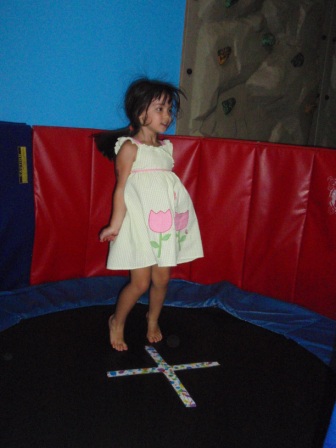 Now she is ready for the obstacle course! She did it multiple times, racing with other kids,