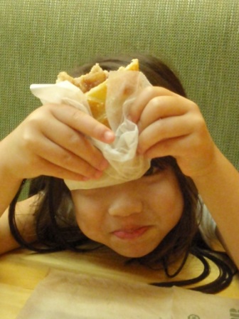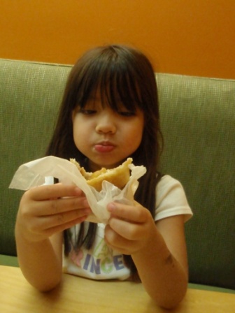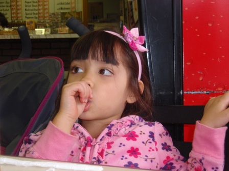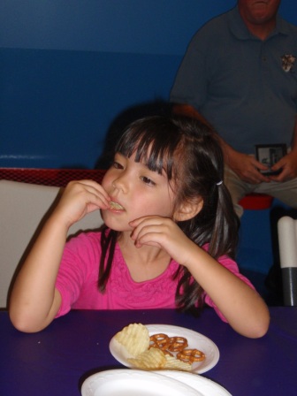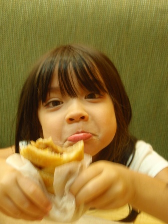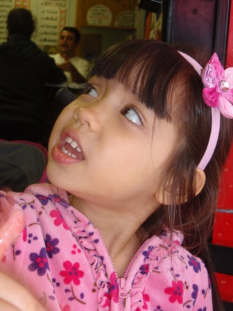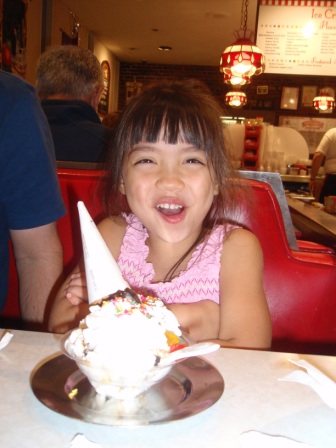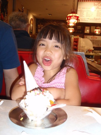 that weekend, so with the $60 shoes, she got a free ice cream. Here she is modeling her new shoes.