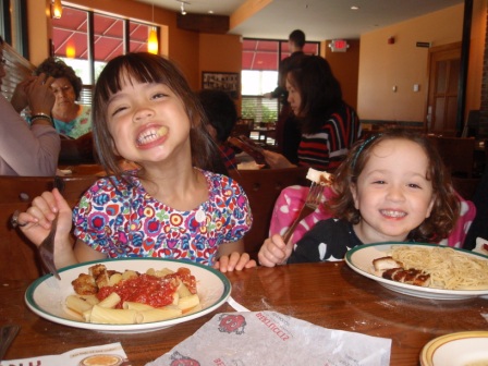 September 22, 2012: After ballet, we meet up with Greer for lunch at Bertucci's.