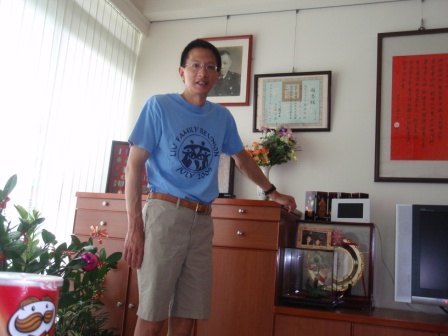 One final family dinner at Nai Nai's house. The scroll on the left is a present to Nai Nai from President Ma.