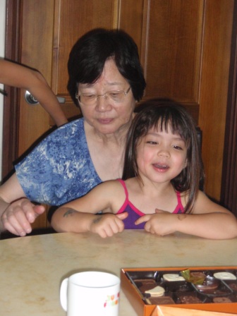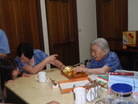 Nai Nai opens a birthday gift...and the kids wisely come to find out what it is. Mmmm!