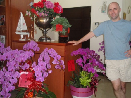 Throughout the day, huge arrangements of orchids keep arriving for Nai Nai's birthday. Other