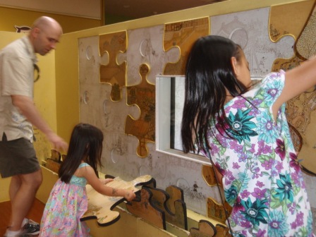 explored the newly opened children's room. There was so much to do there! They played ancient bells,