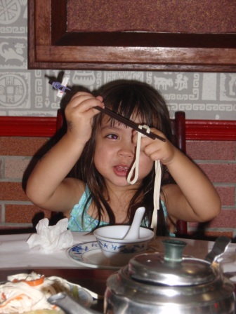 We took a cab back to the hotel to meet everyone for lunch at a small restaurant nearby. Aurora enjoys her noodles.