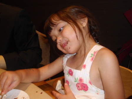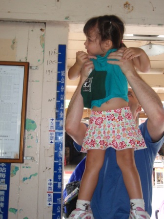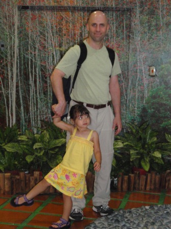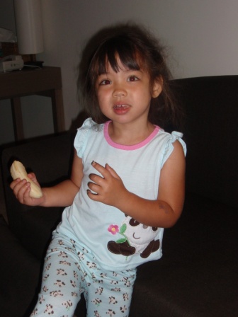 July 7, 2011: Aurora is up early and has a banana before breakfast. We then head out to an area