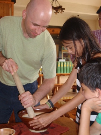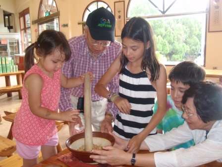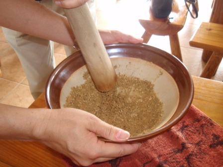 got to grind our own special blend of herbal tea. It sure was hard work breaking up all those peanuts