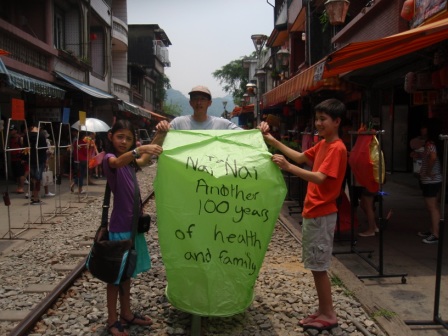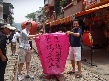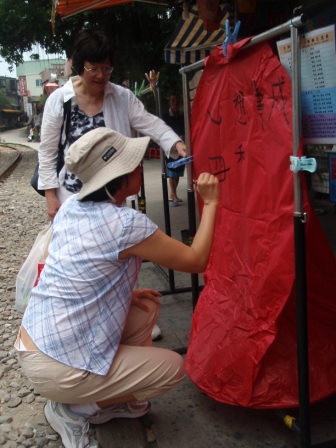 Back onto the train and we return to Shifen, where we pick out, decorate, and release sky lanterns. Different