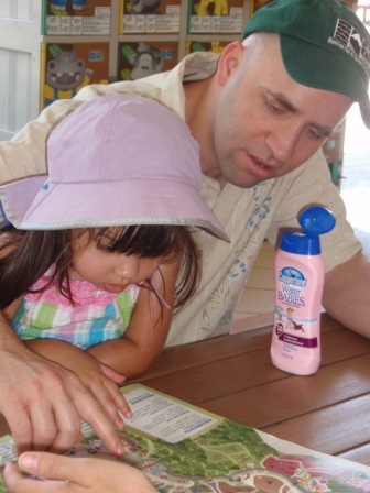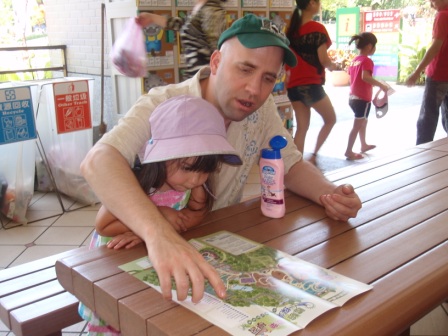 After breakfast, the remaining group heads off to the Taipei Zoo. Aurora studies the map to point out