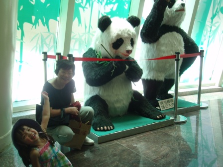 The Panda House is nice and cool! Kathy can stay here all day, and not just to watch the pandas! We were