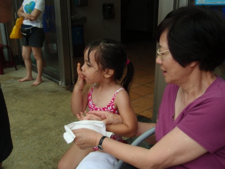 she really really likes peanuts. Here she is getting Wai Po to get the last ones out of the jar