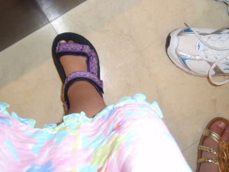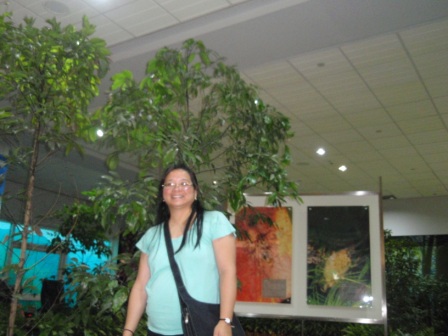 Mama at the "green" waiting area at the airport.